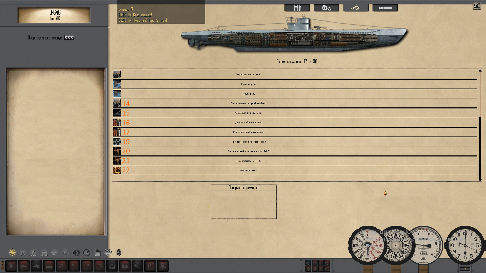- Оборудование, расположенное снаружи легкого корпуса, такое как винтя или рули глубины и т.д. больше нельзя ремонтировать под водой, только в надводном положении. Что соответствует логике и реализму.