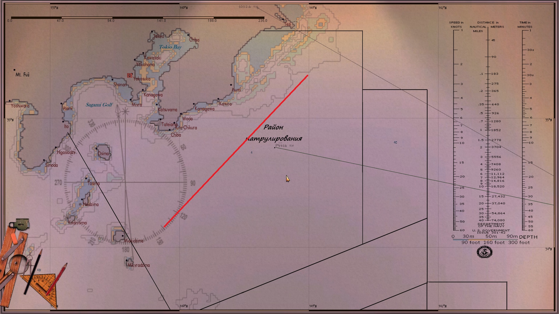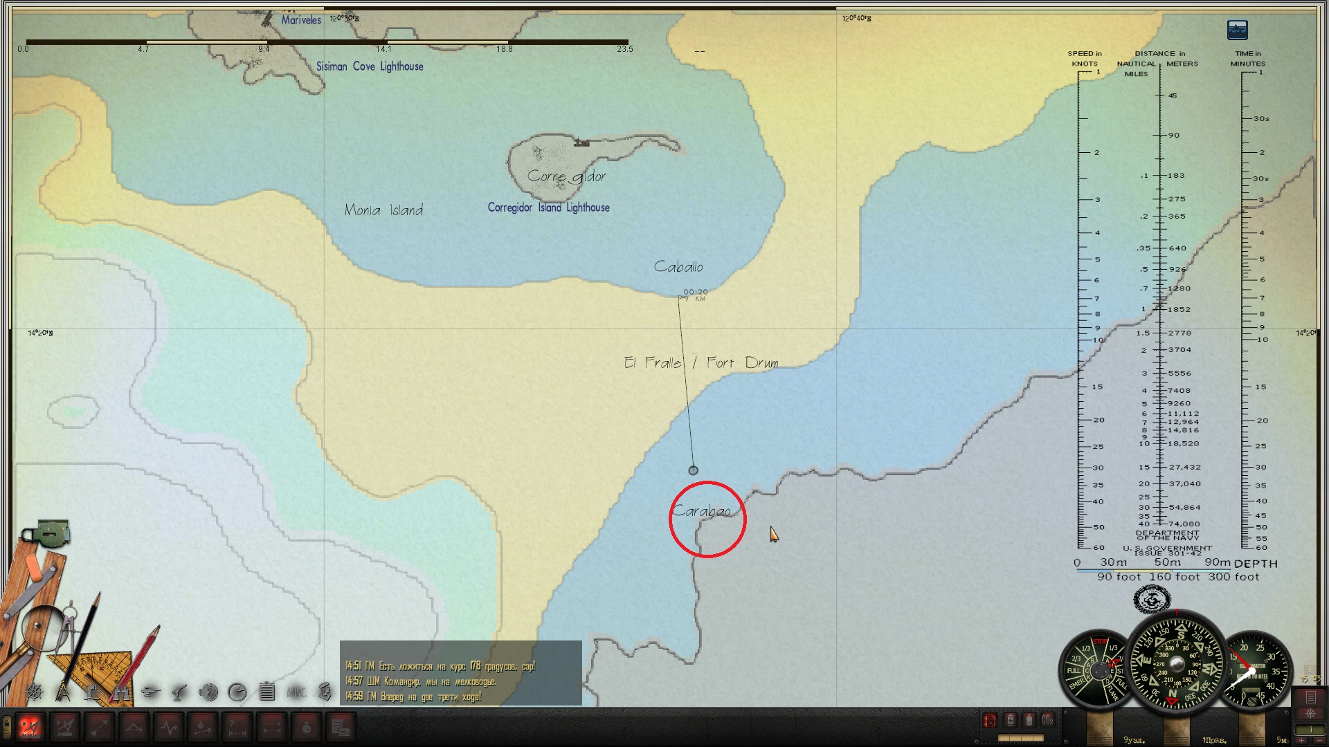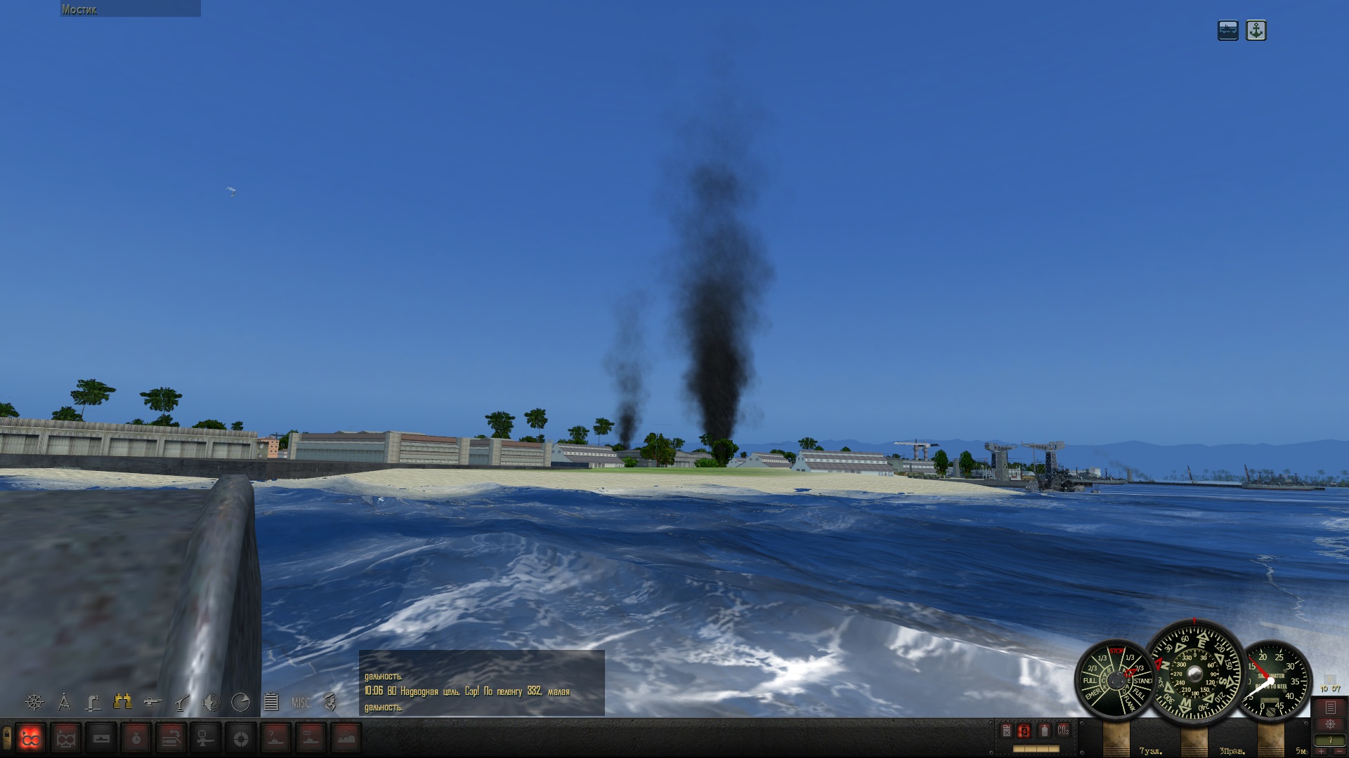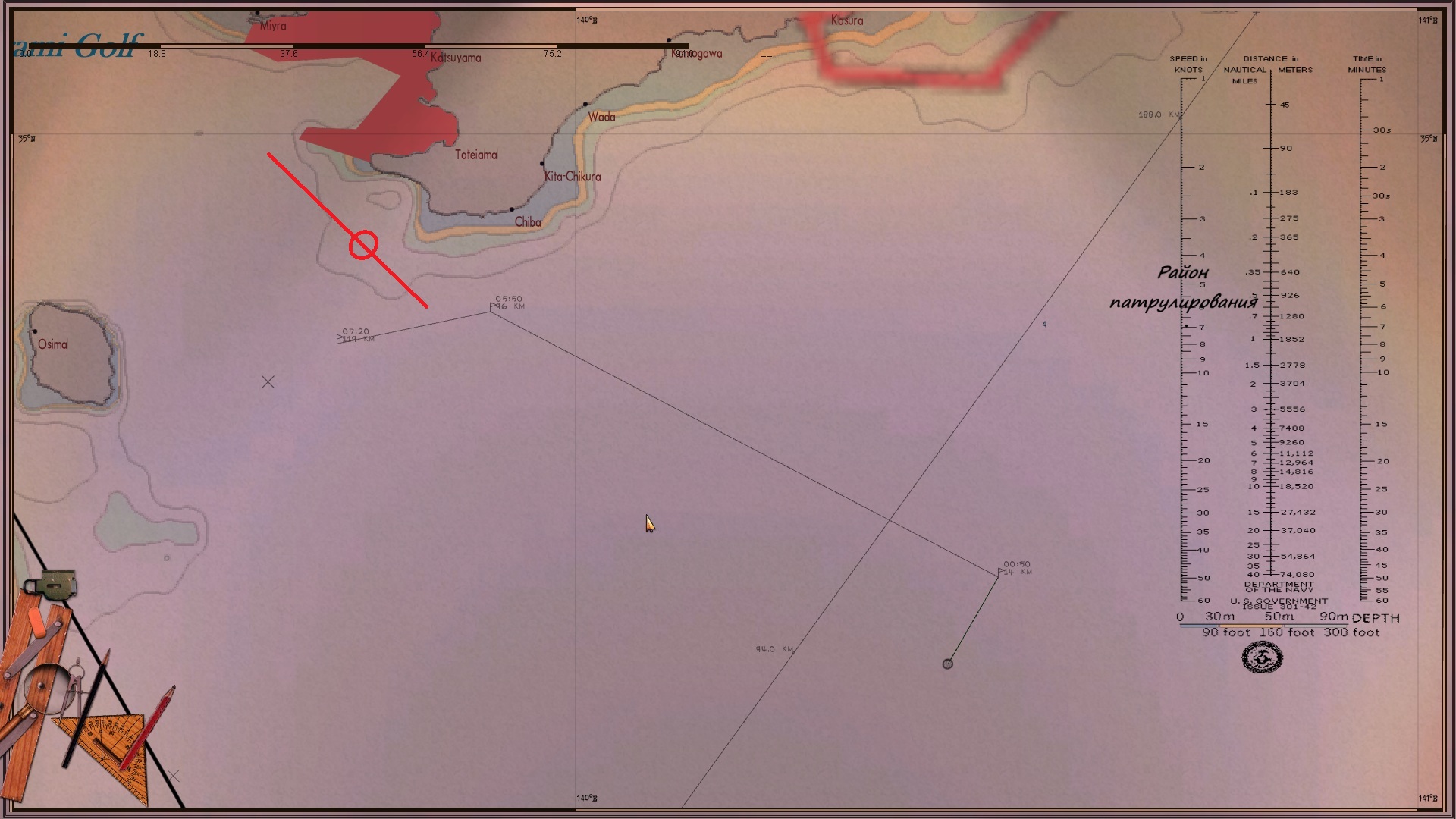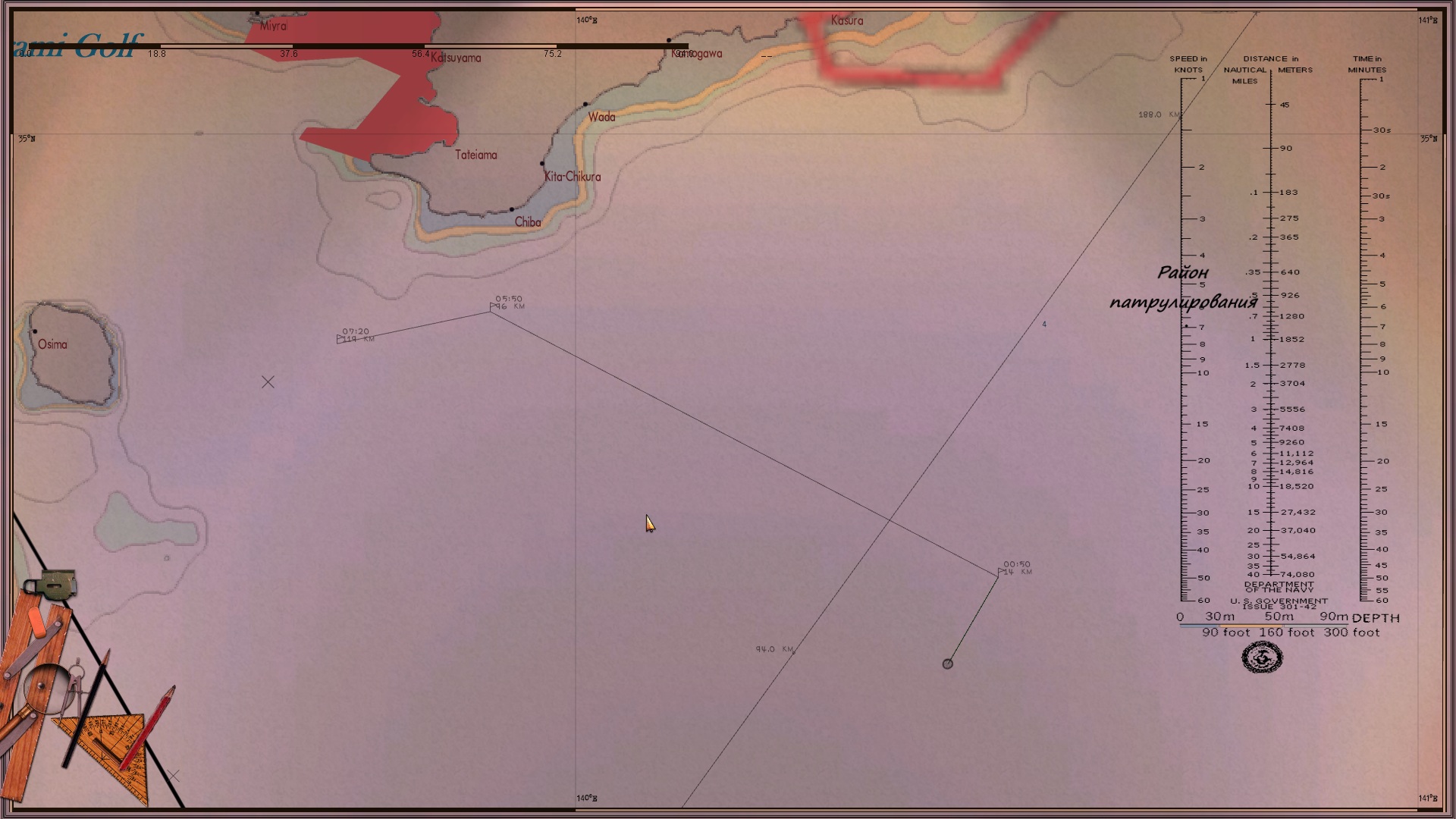 Днём иду к выходу из Токийского залива, а на ночь отхожу так, чтобы до ближайшего порта более 50 км. было. По времени сохраняюсь всегда за полночь (на скринах с приборами 03:05, а сколько было в первый раз, как приборы глюканули - я не помню). Вахта ни о каких контактах вокруг не докладывала, а сам я не проверял, может и был кто, не знаю. Может из-за сохраненок? У меня все сохранёнки с начала похода были, 12 или 13 штук, я их не удалял, хотя вспомнил потом, что их подчищать надо вроде.